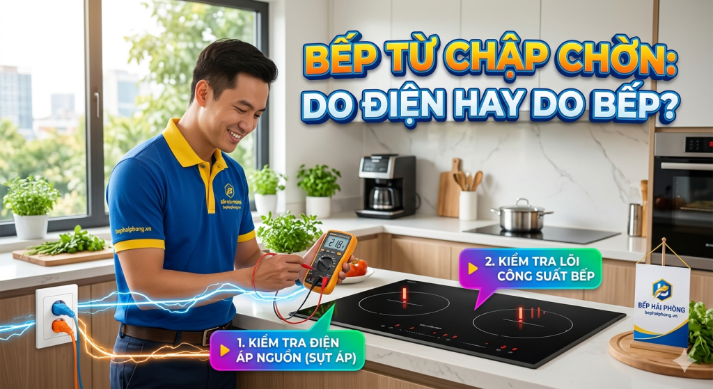 Sapo: Đang hào hứng chuẩn bị bữa tối cho gia đình thì chiếc bếp từ đột ngột “dở chứng”: lúc chạy lúc ngắt, bảng điều khiển nhấp nháy hoặc tệ hơn là tự tắt hoàn toàn. Đừng quá lo lắng! Hiện tượng bếp từ bị chập chờn khi nấu không phải lúc nào cũng là do bếp hỏng. Hãy cùng Bếp Hải Phòng thực hiện 4 bước kiểm tra dưới đây để tìm ra “thủ phạm” thực sự.