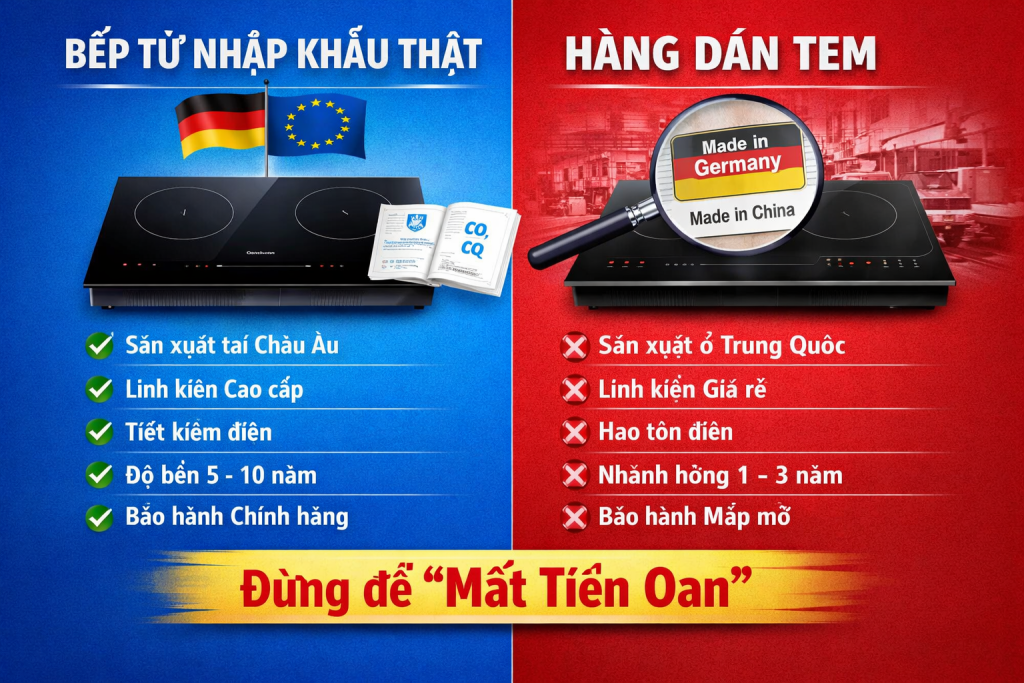 Sự khác biệt giữa bếp từ nhập khẩu thật và “hàng dán tem”
